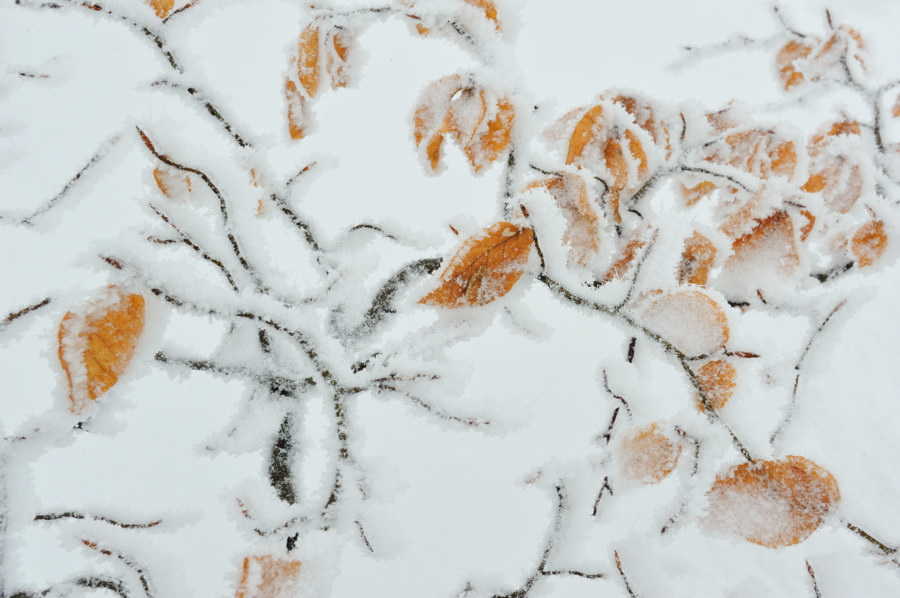 Heidelbeeren, Raureif, Gegenlicht, Lichtreflexe